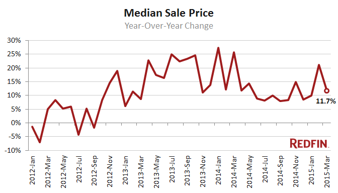 That sky-high buyer interest is keeping price and sales growth strong. Home values rose 11.7 percent from a year ago in March, the third consecutive month of double-digit growth, and sales accelerated, notching their biggest year-over-year gain in more than a year.