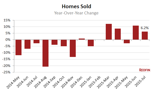 Bidding wars cooled slightly since last month. Less than 63 percent of properties that Redfin customers placed offers on had multiple offers in July, down from 69 percent in June. About 38 percent of homes sold in July went for above asking price.