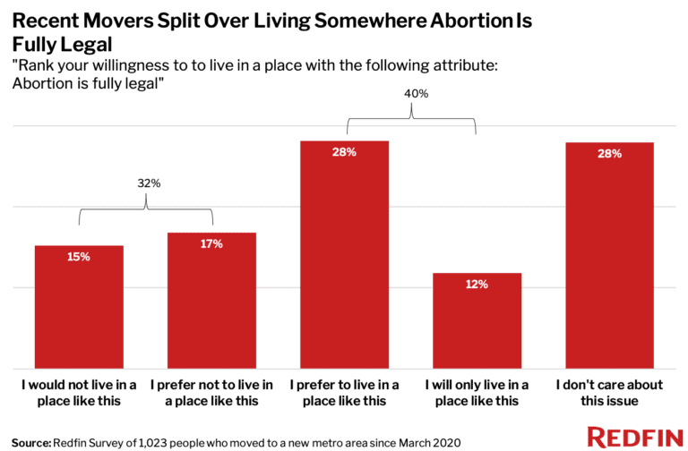 1 in 7 Recent Movers Refuse to Live In a Place Where Abortion Is Fully Legal: Redfin Survey