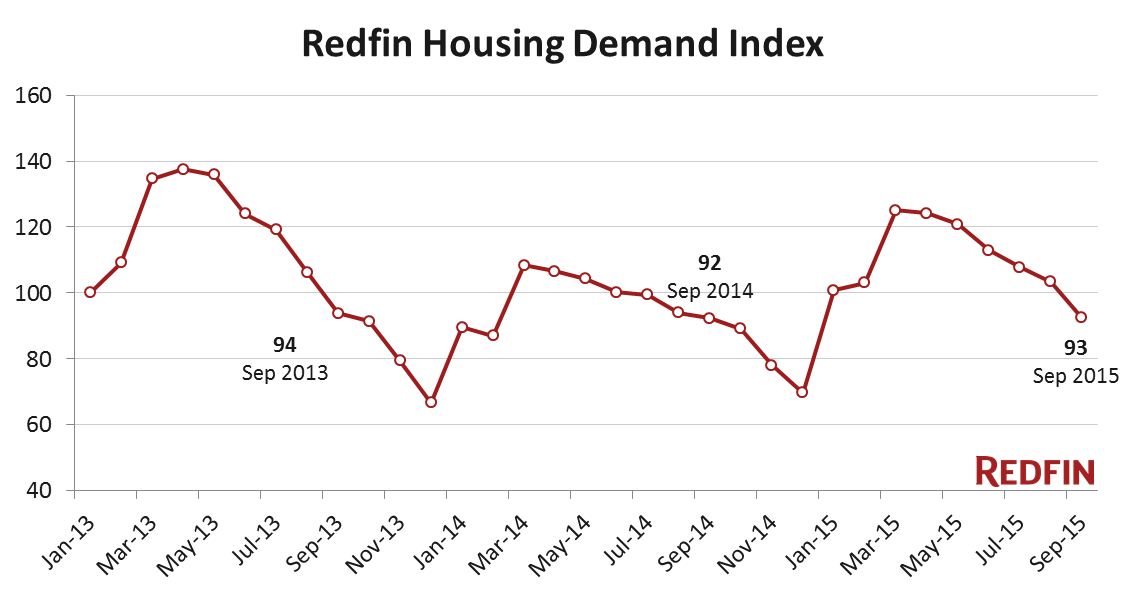 The Redfin Housing Demand Index posted its smallest annual increase so far this year, inching up only 0.3 percent to 93 in September from 92 a year earlier. Fewer people are touring and those who are have less to choose from, but they’re still making offers.